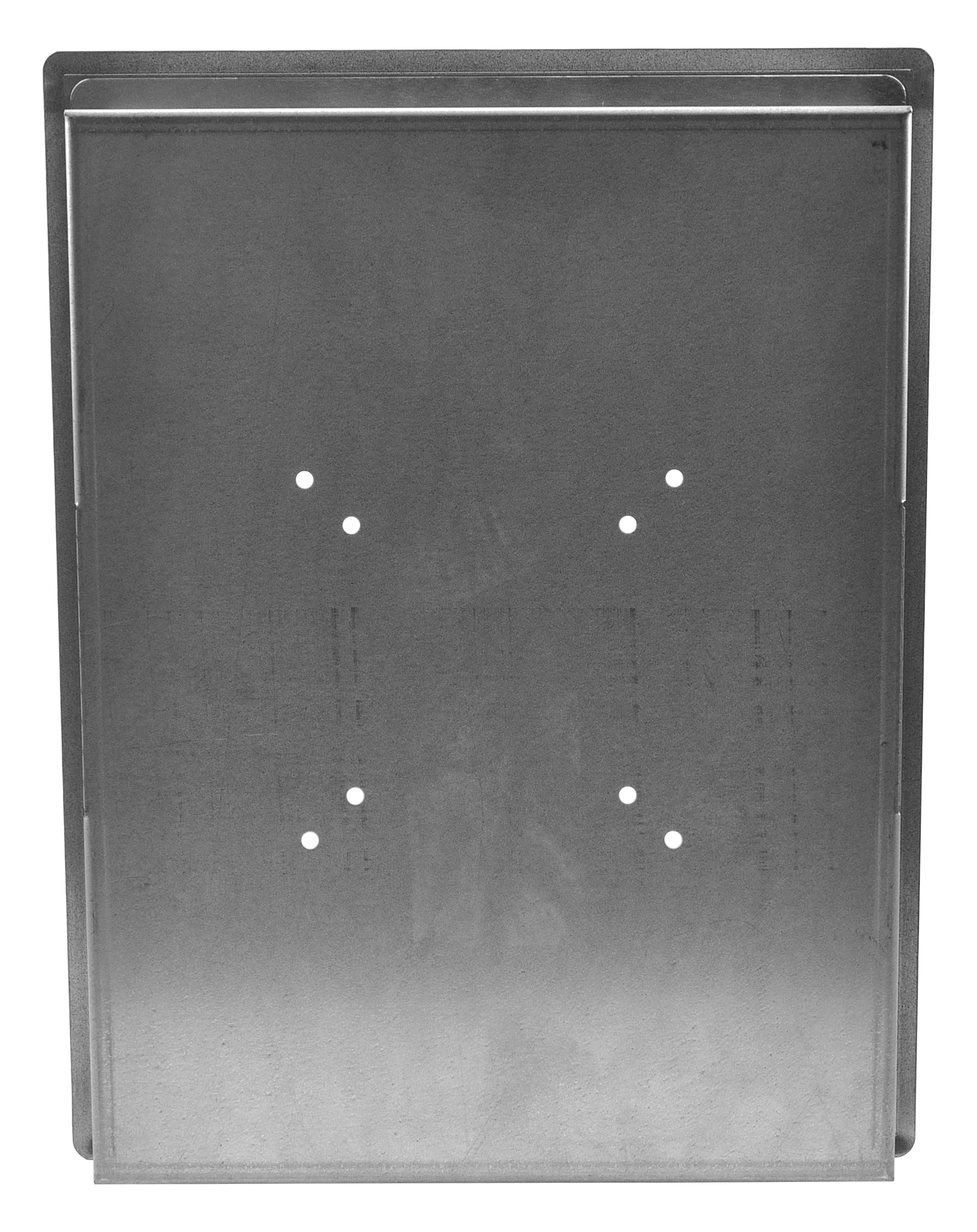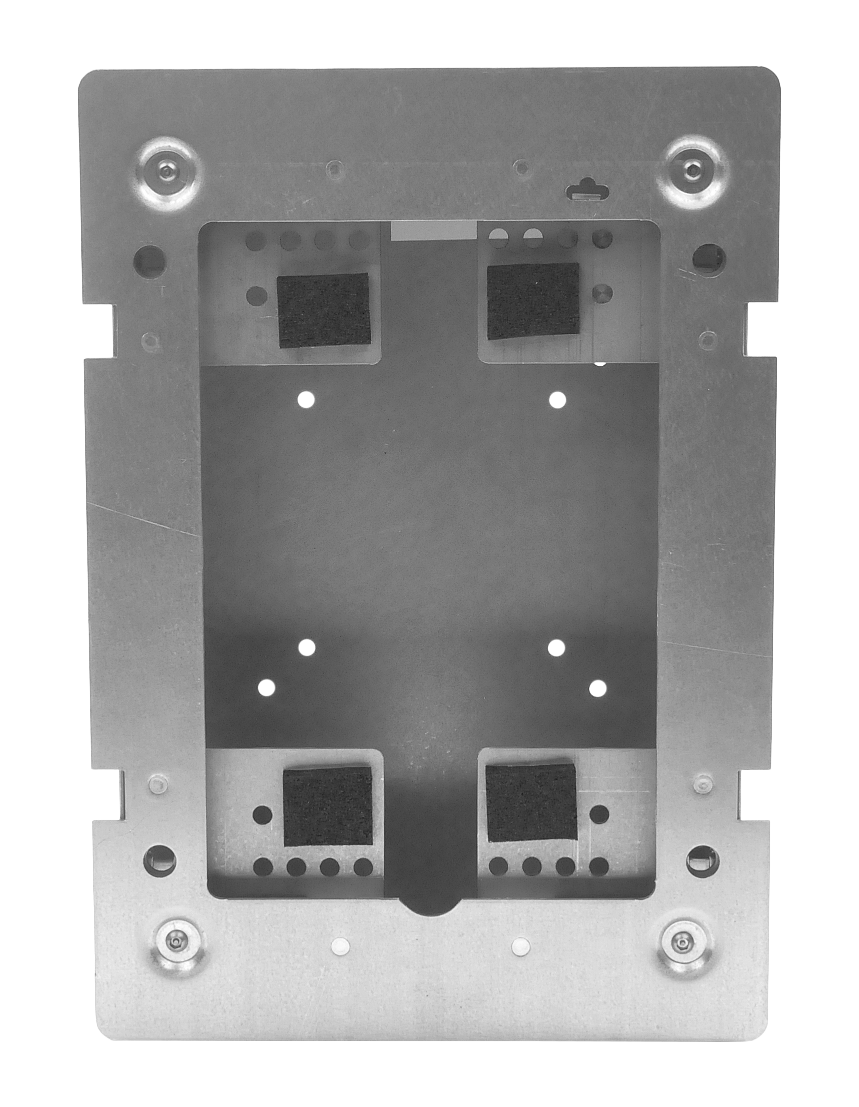 The WE-FMIPDNB-BLK flush mount enclosure has no button and is perfect for new construction or installations where housing the iPad within the wall is desired. The enclosure mounts within a standard 3” or 4” wall and houses the iPad in either the portrait or landscape position. The cover can be ordered with or without access to the Home button and camera to support the specific needs of the installation.