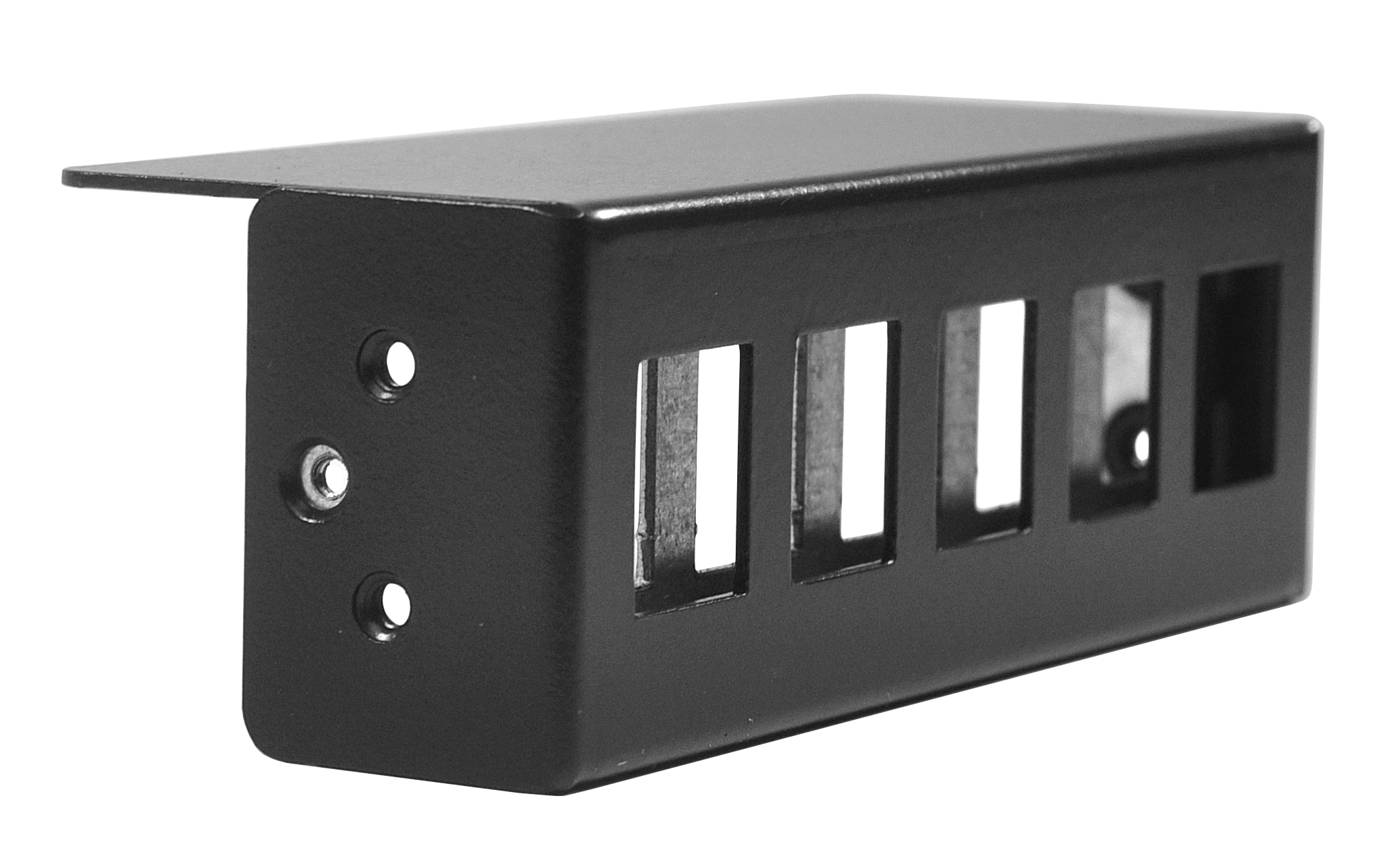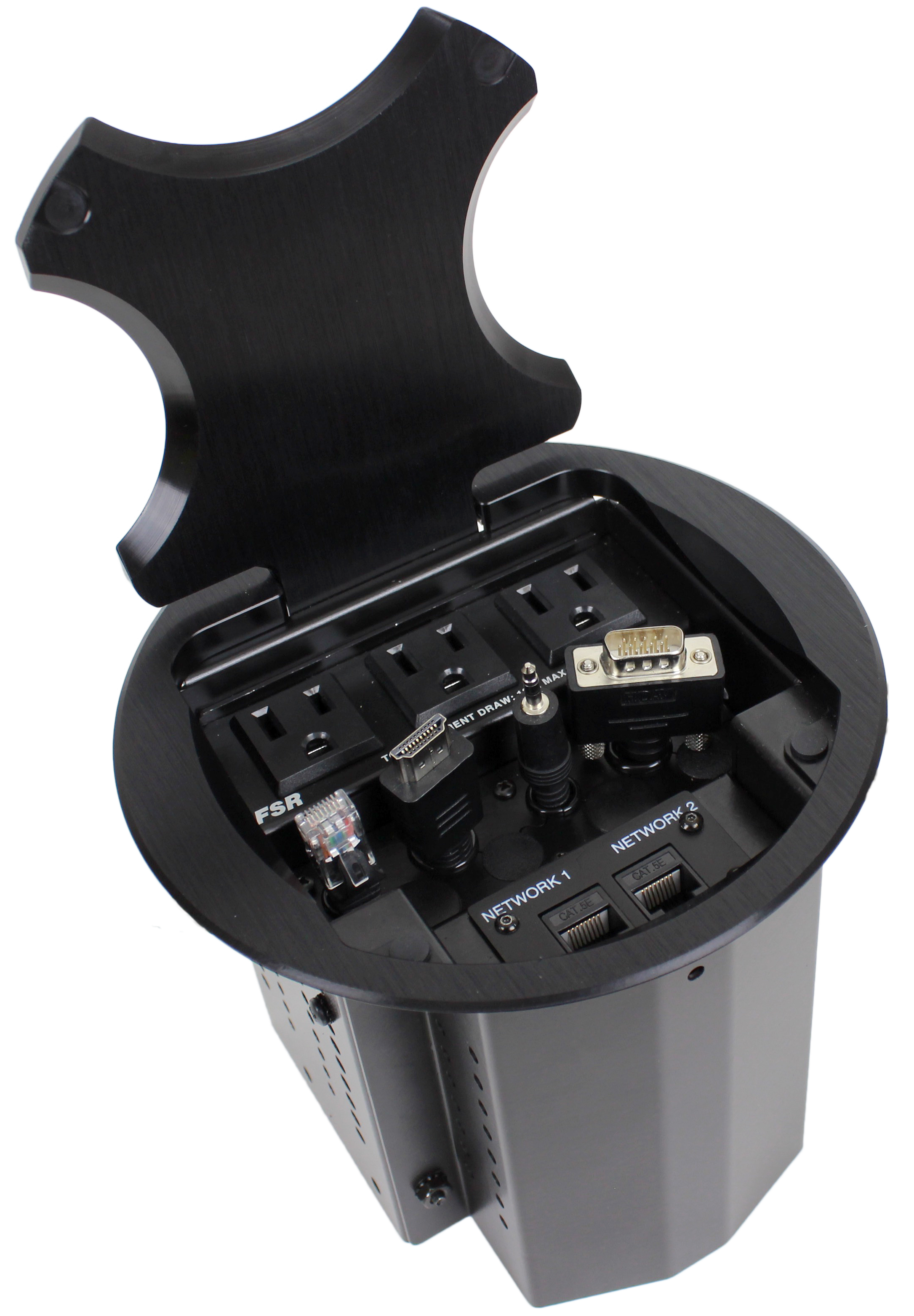 The USB Type-A and Type-C internal bracket is designed to contain AC power plus a USB Type-A and Type-C Charger. Each USB charging port incorporates integrated power management circuitry to determine the delivery requirements for the connected devices. The built-in electronics directs the available power to a single port or divides the power to provide the fastest charging based on the available power. This bracket can be installed in both our CT6 and RT6 table boxes.