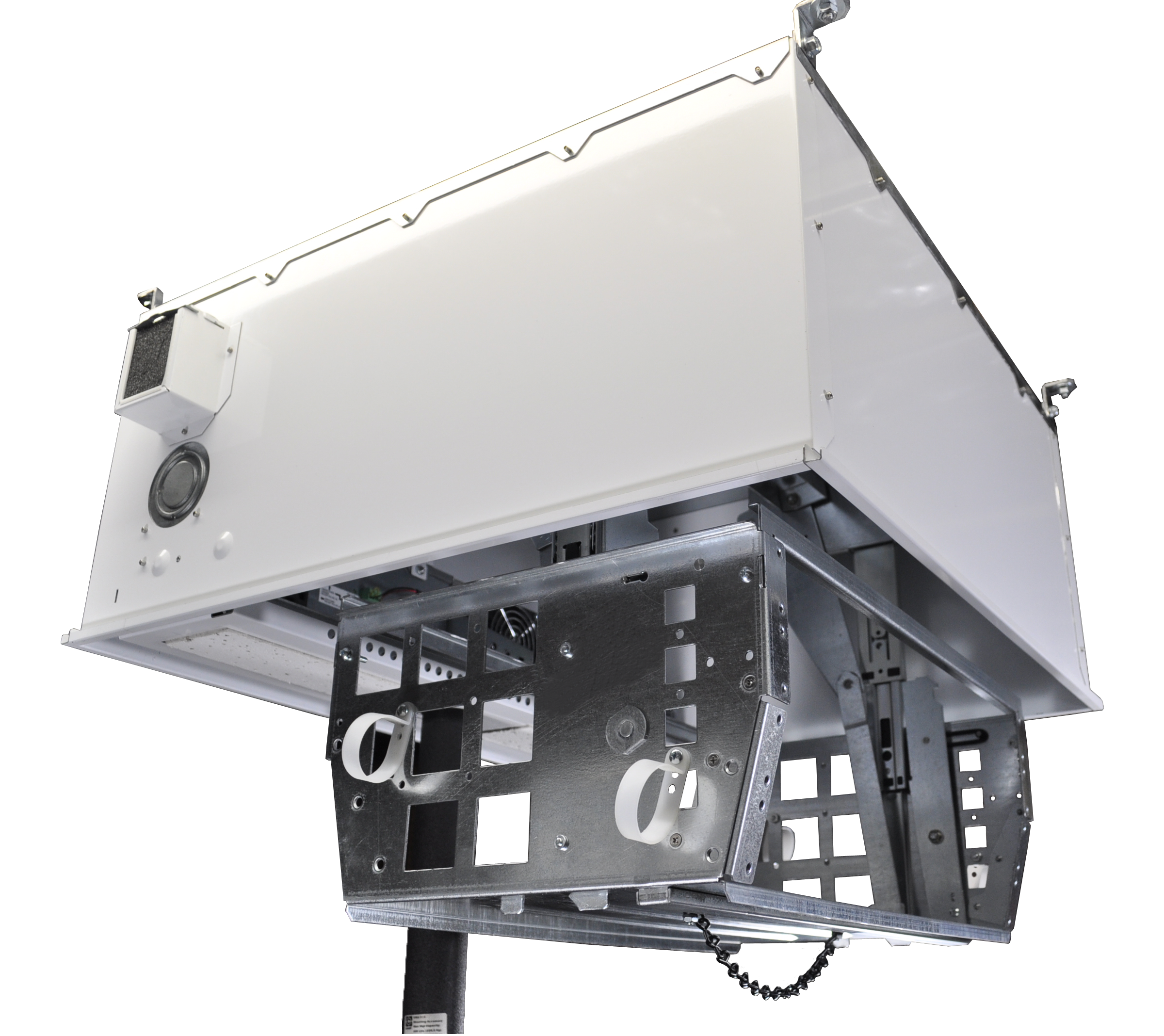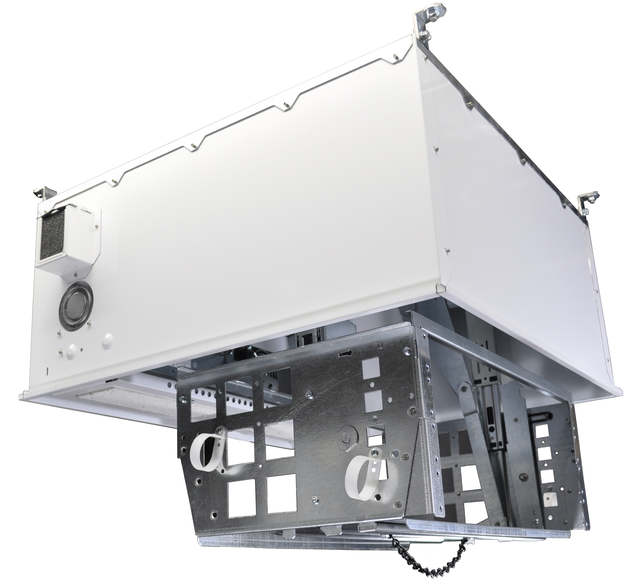 The CB-224 ceiling box has been designed with a new advanced feature 4-RU rack. The CB-224 series has a deeper box design to carry the pull down 4-RU rack cage. This advanced feature rack cage is also capable of carrying 25 lbs. of electronic equipment.