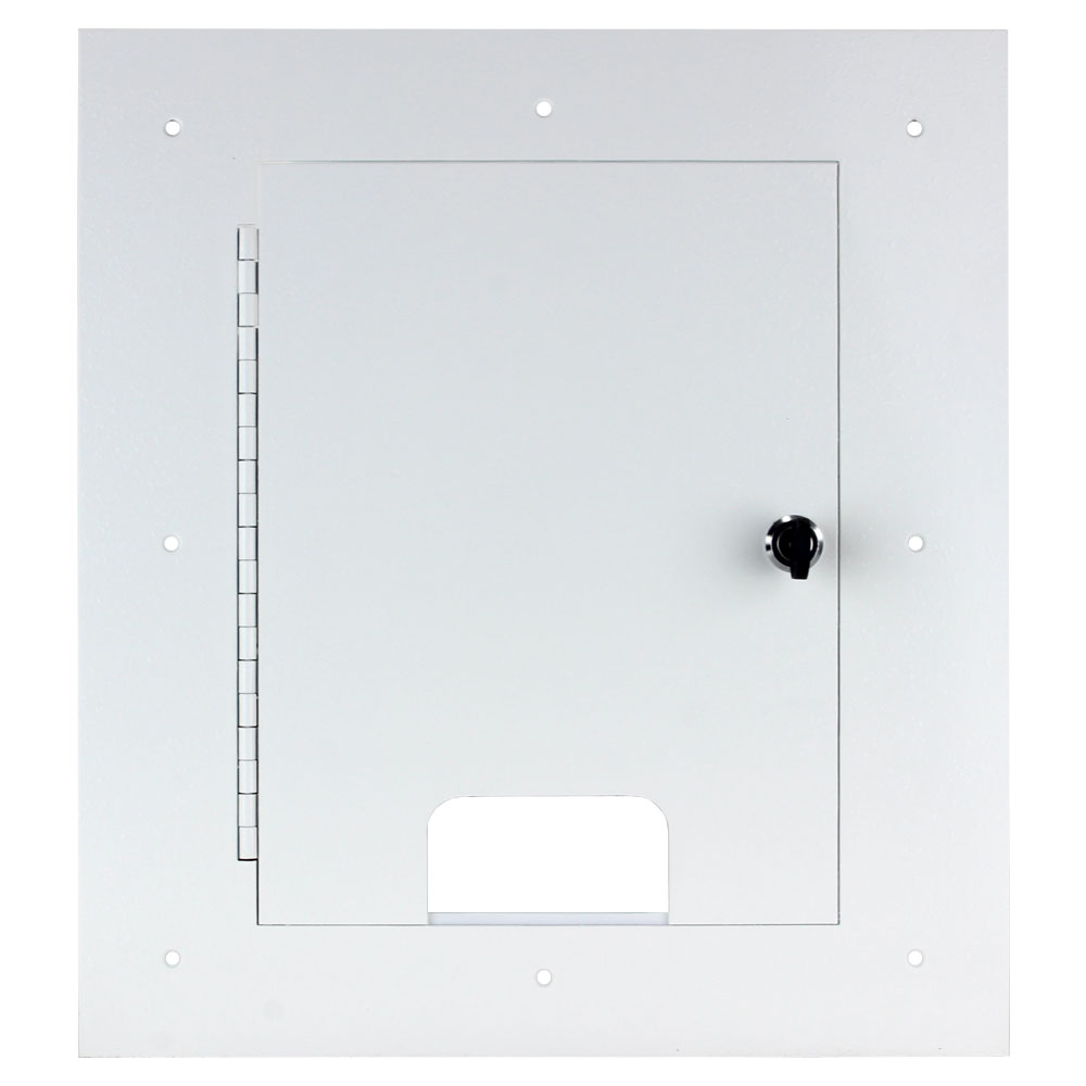 The JL cover wall box conversion kit changes a standard FL-500P and FL-600P box bottom into a high-capacity wall box.  This is perfect for concealing a large number of power and A/V or data jacks in a convenient wall box with a locking cover. The JL cover is shipped with a high gloss white paint. This cover will work with either the standard 4" or 6" FL-500P and FL-600P box bottoms.