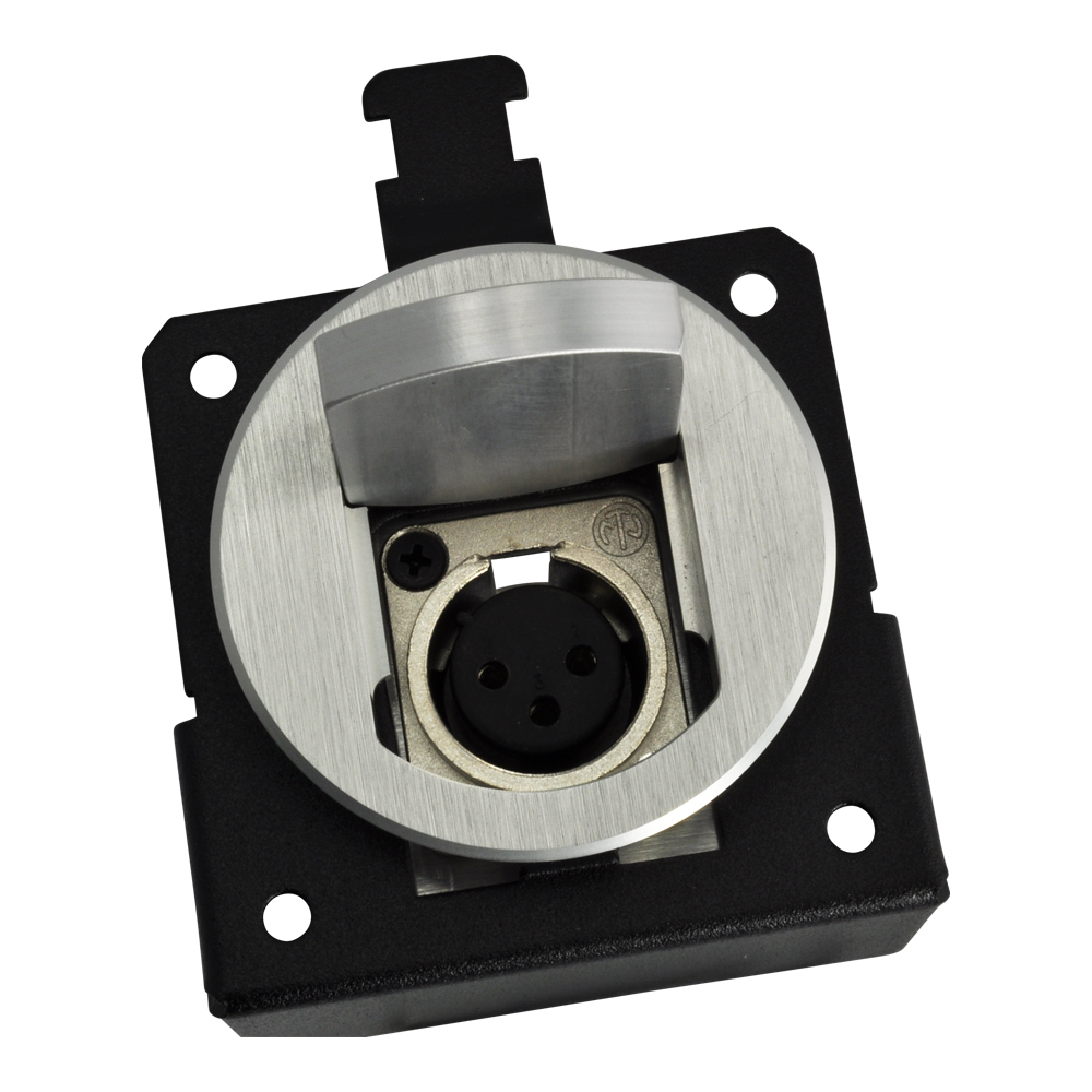 The T3-MJ+ is a simple installation requiring a 2-inch round hole. Less than 1.5-inches of under table clearance is required. The built-in, acoustically isolated microphone connector accommodates microphones with 3-pin XLR plugs of a diameter of 1-inch or less and provides superior shock and vibration damping.