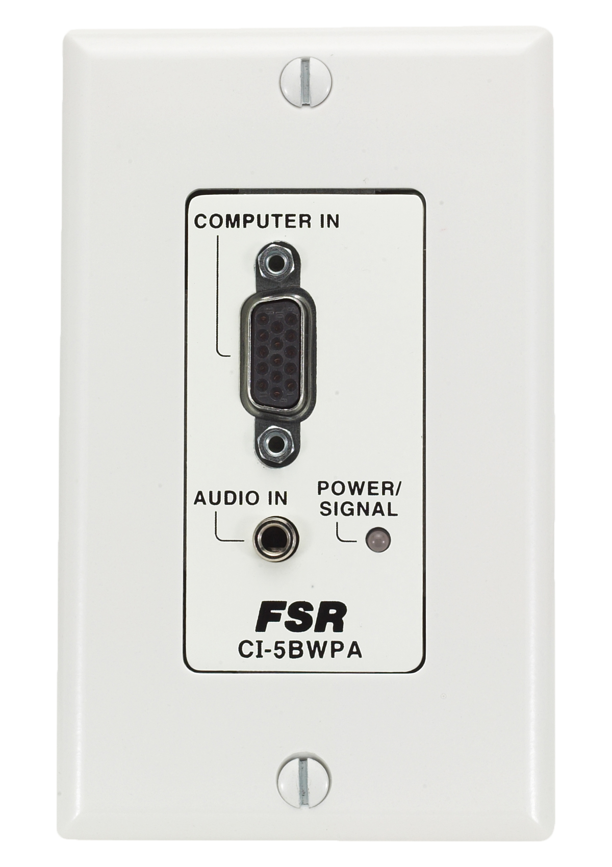 The slim line CI-5BWPA is designed to fit in any standard single gang box and fits any Decora wallplate. Its shallow depth fits easily in to any of FSR's floor, wall, or table boxes. With built-in cable equalization the CI-5BWPA wall plate interface addresses many applications where long cable runs are required.