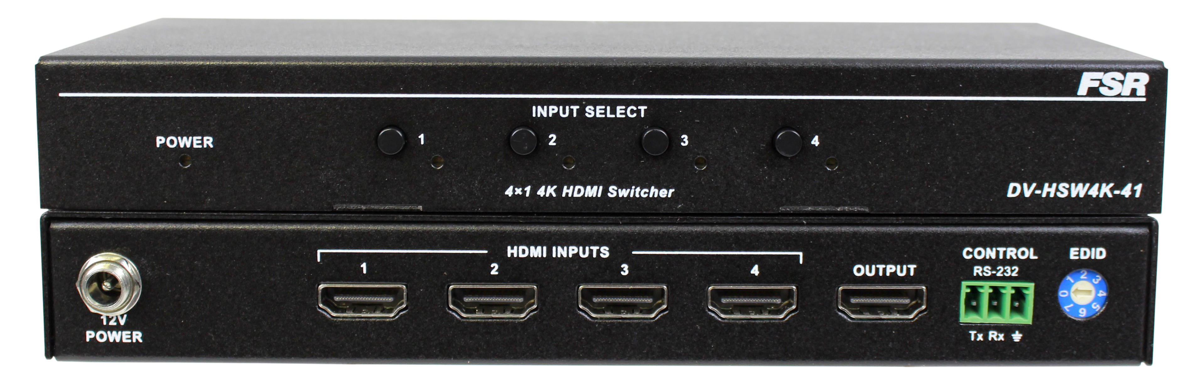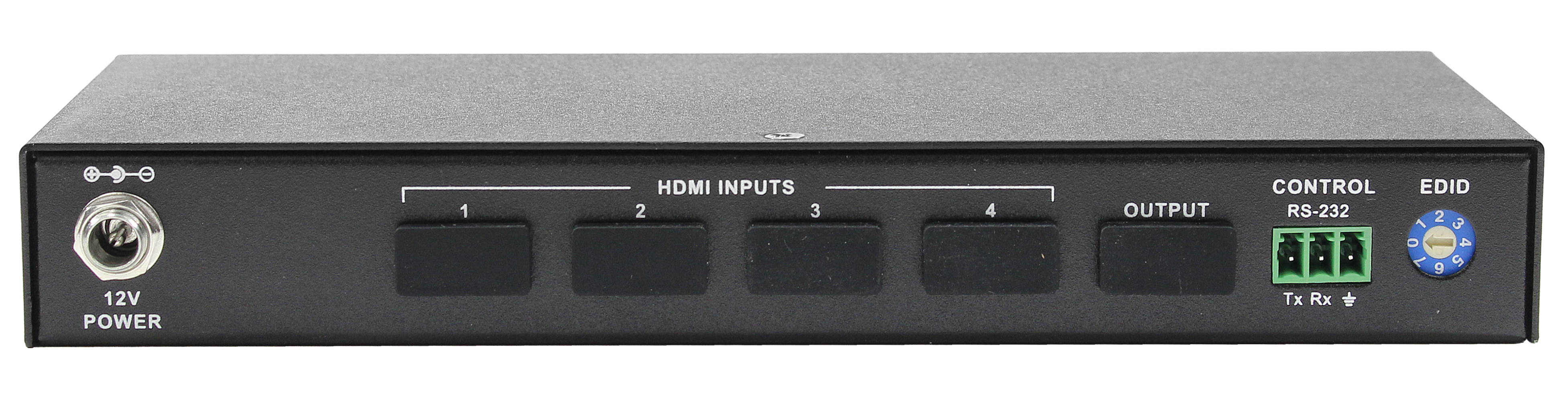 The DV-HSW4K-41 is a 4x1 UHD 4K HDMI Digital Switcher and it maintains a quality throughput without signal loss supporting resolutions up to UHD 4K 2160p (3840 x 2160) @60Hz (4:2:0). The unit features an EDID copy mode that can be used when the standard EDID preset resolutions do not match the display.