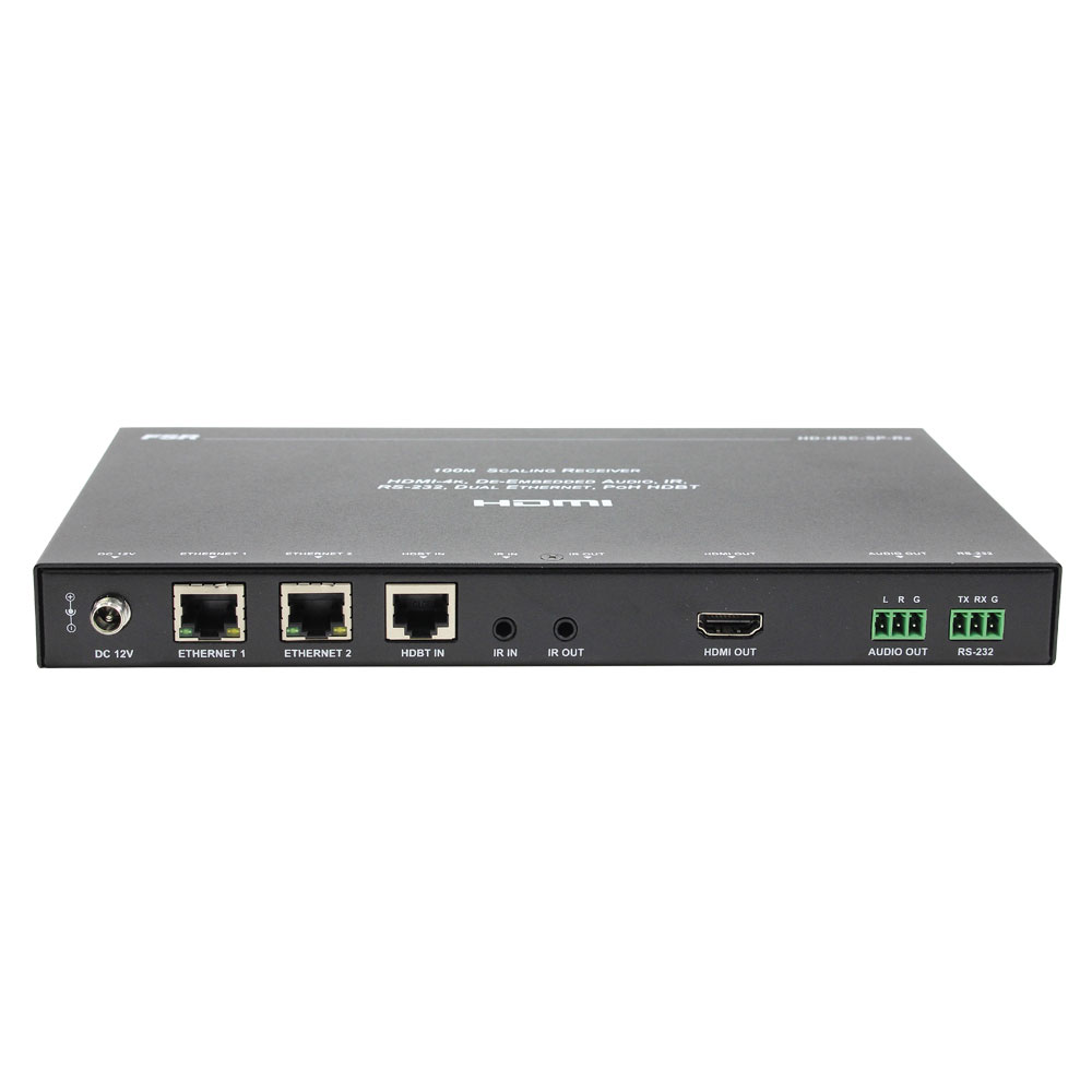The HD-HSC-SP-Rx is a true HDBaseT 5-Play device that receives uncompressed 4k UHD Video (4K UHD / 2160p (3840 x 2160) @ 60Hz (4:2:0 8-bit)), audio, bidirectional control (IR & RS-232), and Ethernet via one CAT-6A shielded cable out to 100 meters.