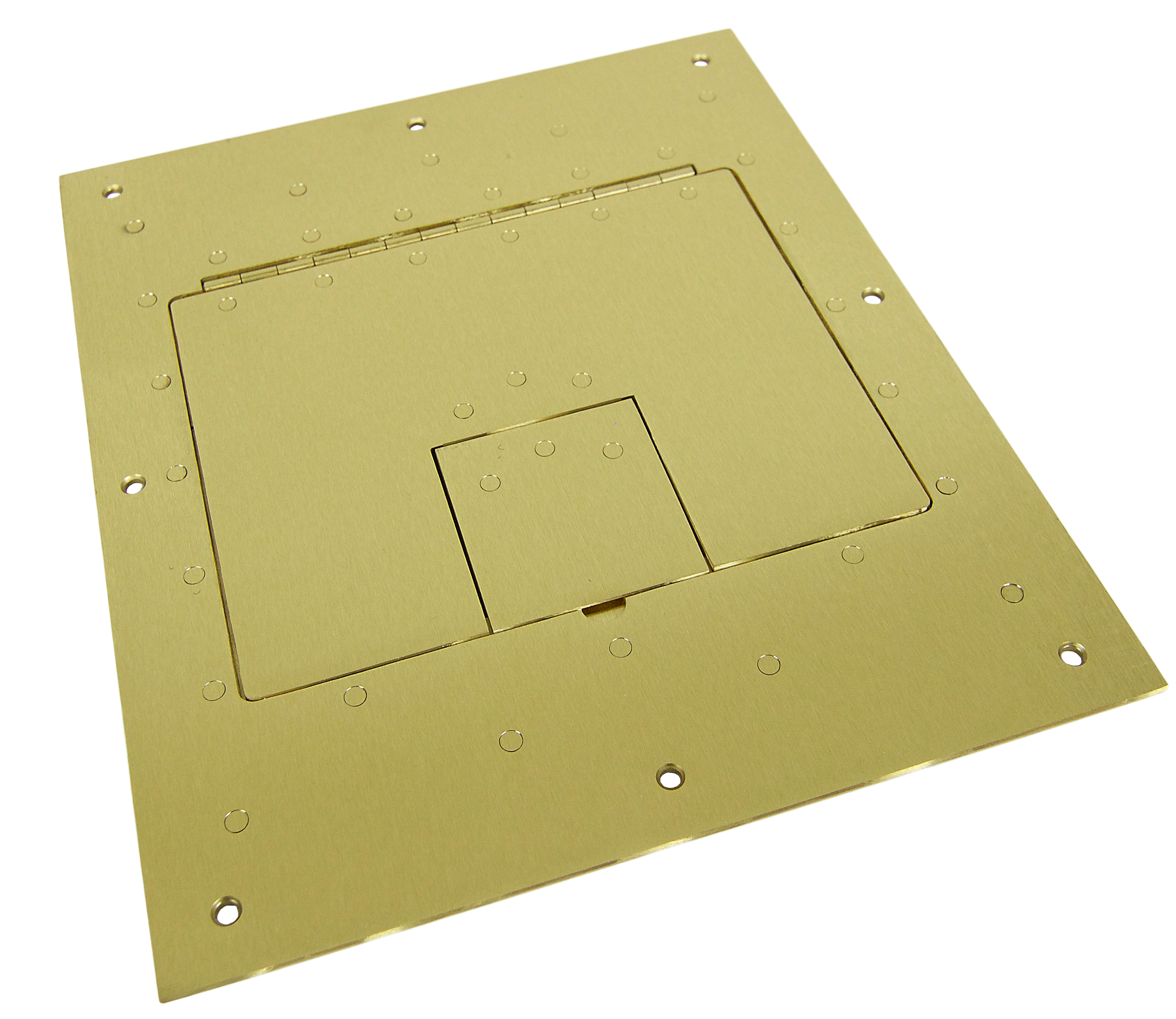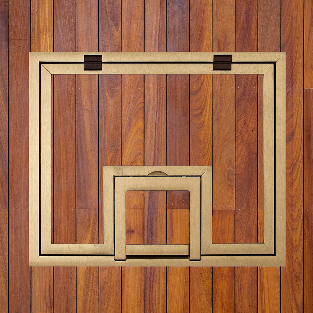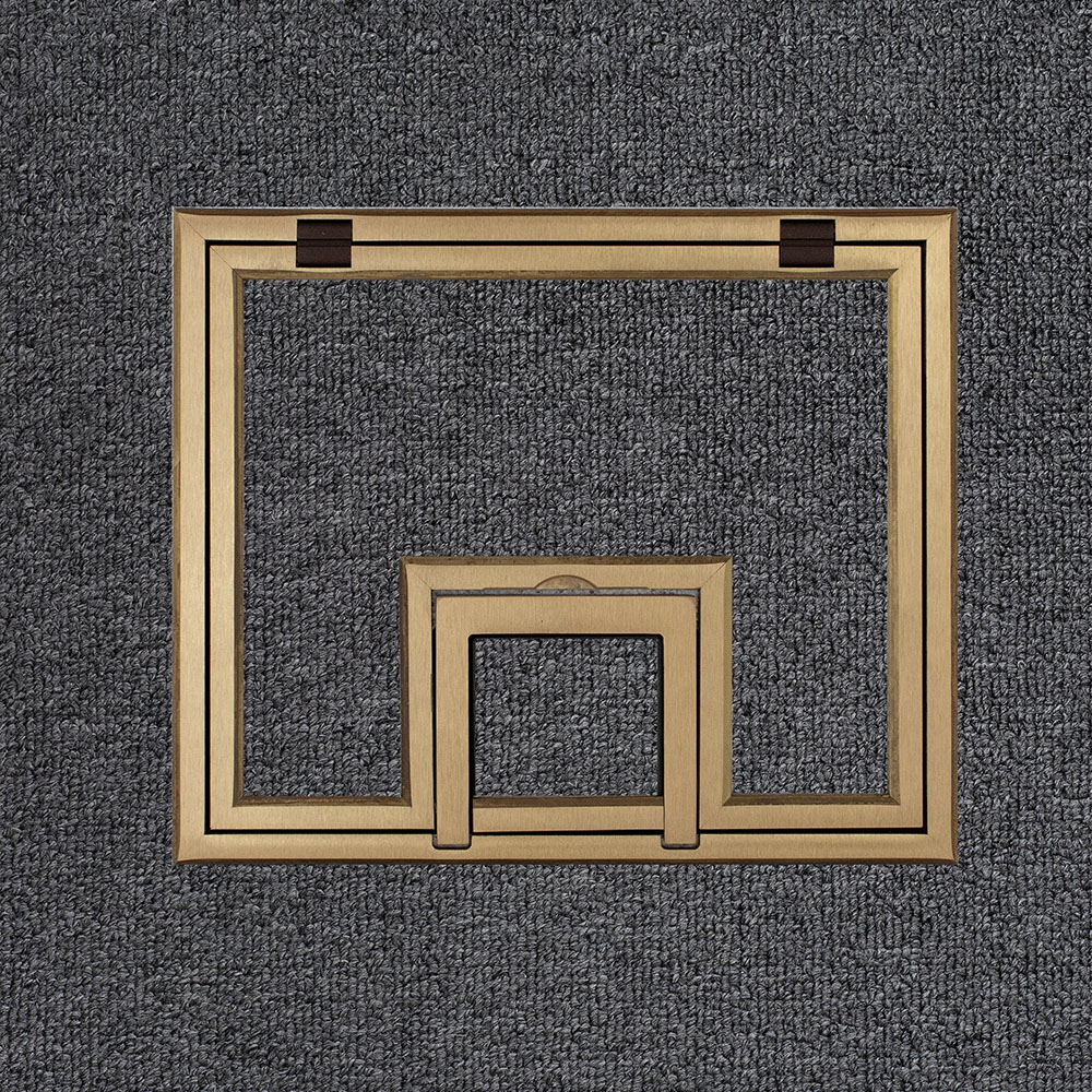 We re-enginnered our FL-500P covers to make ease of accessibility a priority. Our hinge design allows full tool-less access to internal connector plates and stored cables, and the smaller hinged cable access door flips back to create an exit point for cables. When the floor box is not in use, the cover can be completely closed allowing unencumbered travel in the area with only the hand mitered, elegant carpet edge visible. The low profile edging is 1/4” or 1/2” high and is available in brass or aluminum.
