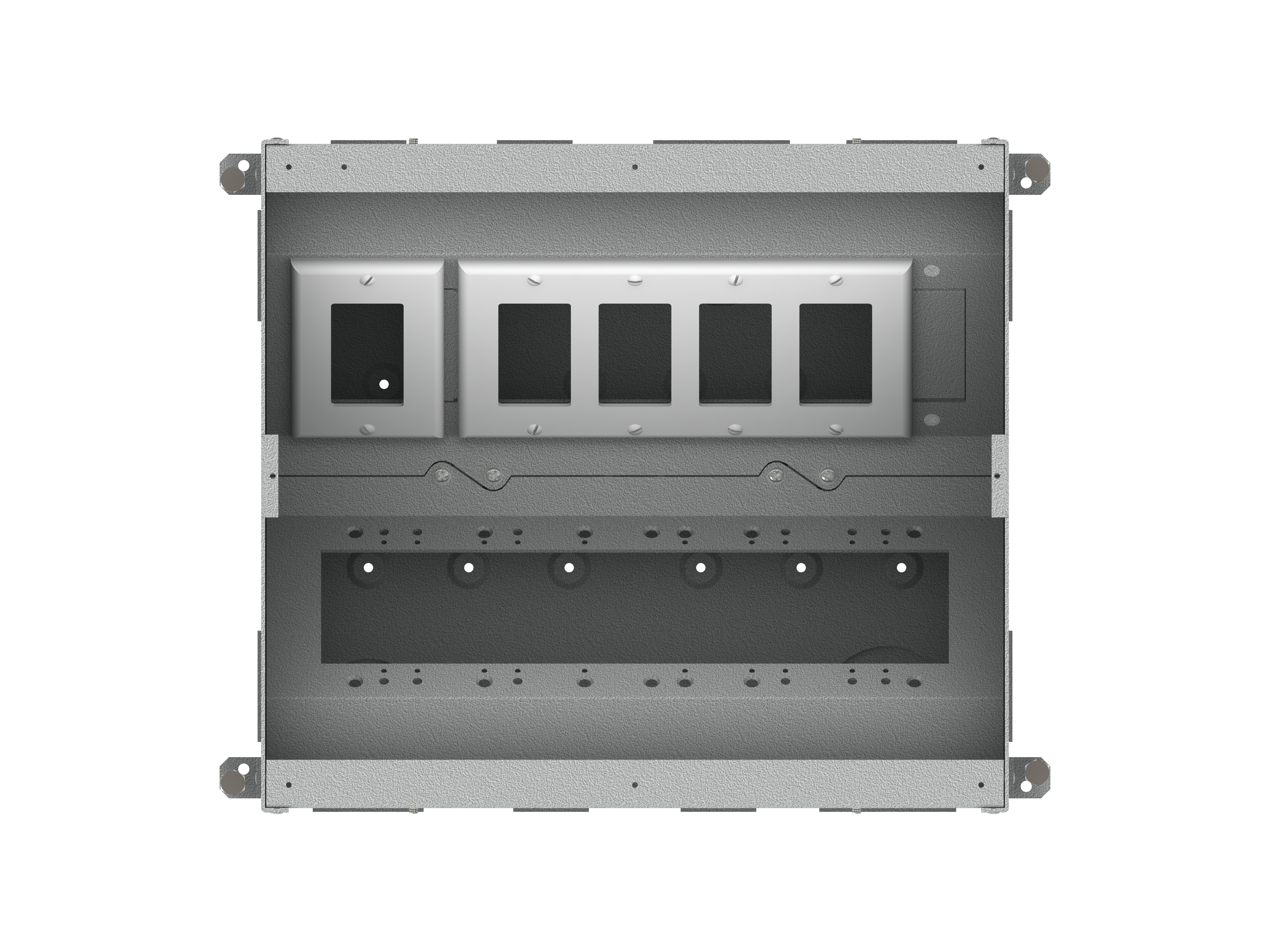 The FL-600P-5 floor box is designed for conference rooms, auditoriums, courtrooms, churches and all general meeting space with carpeted floors over concrete. This floor box handles power, audio, video, telecommunications and data in one elegant and practical box.