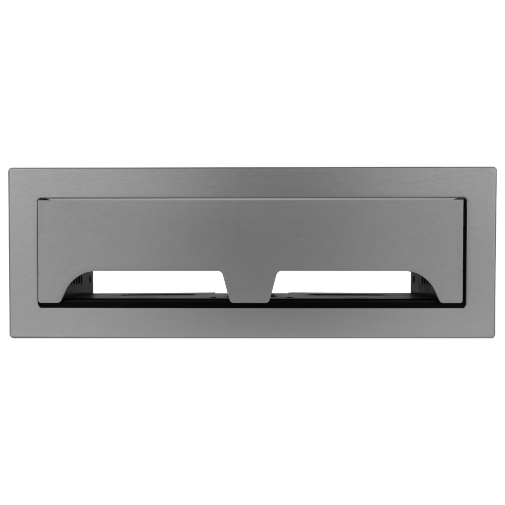The RT6-RD4 table box is a dual-sided rectangular box with spacing for any four T6 series large brackets mounted horizontally facing opposite sides of the box. Individual covers for each side handle your individual applications. It can also be configured to hold up to 16 TBRT cable retractors or 8 retractors to still have space for AC and USB chargers as well. This model is shipped with two (T6-LB-UN) universal brackets, capable of being used with IPS plates, as a blank or cable pull option.