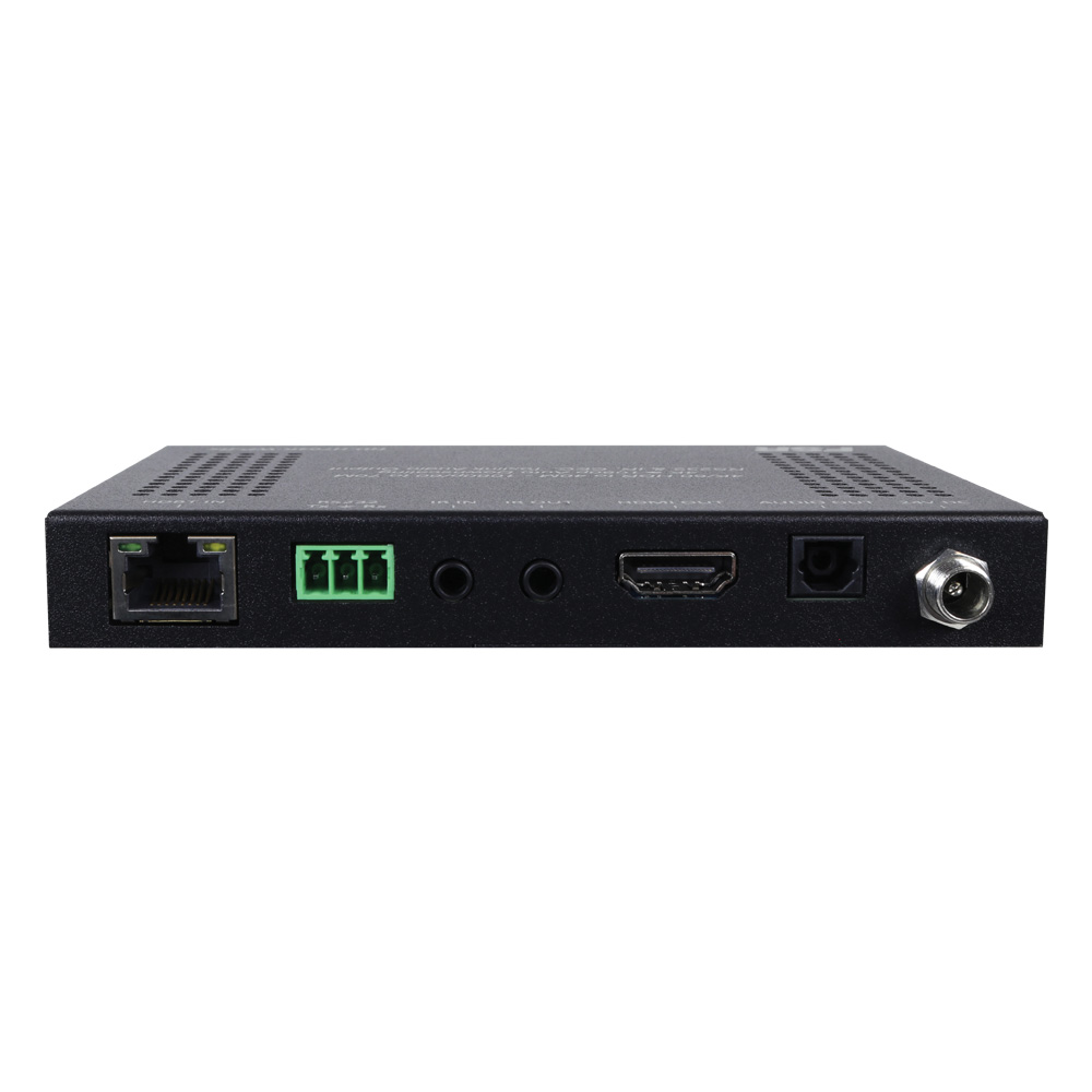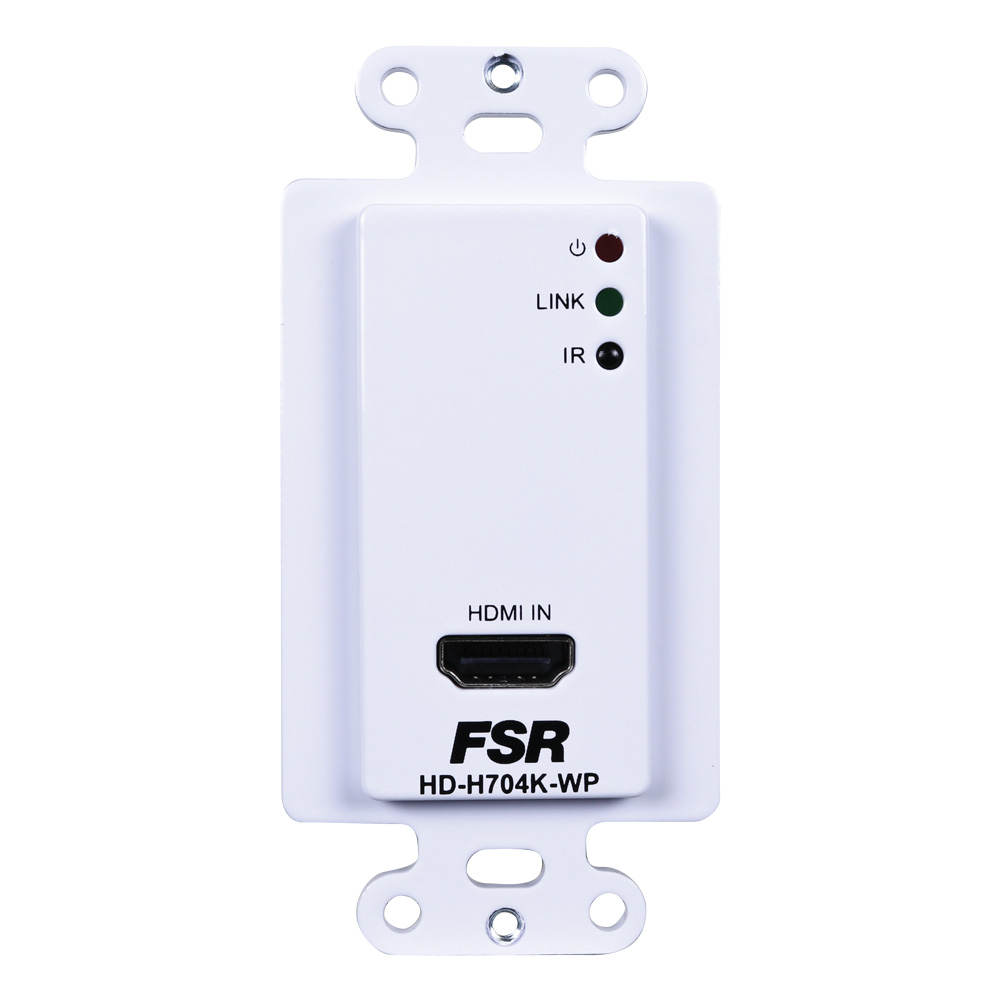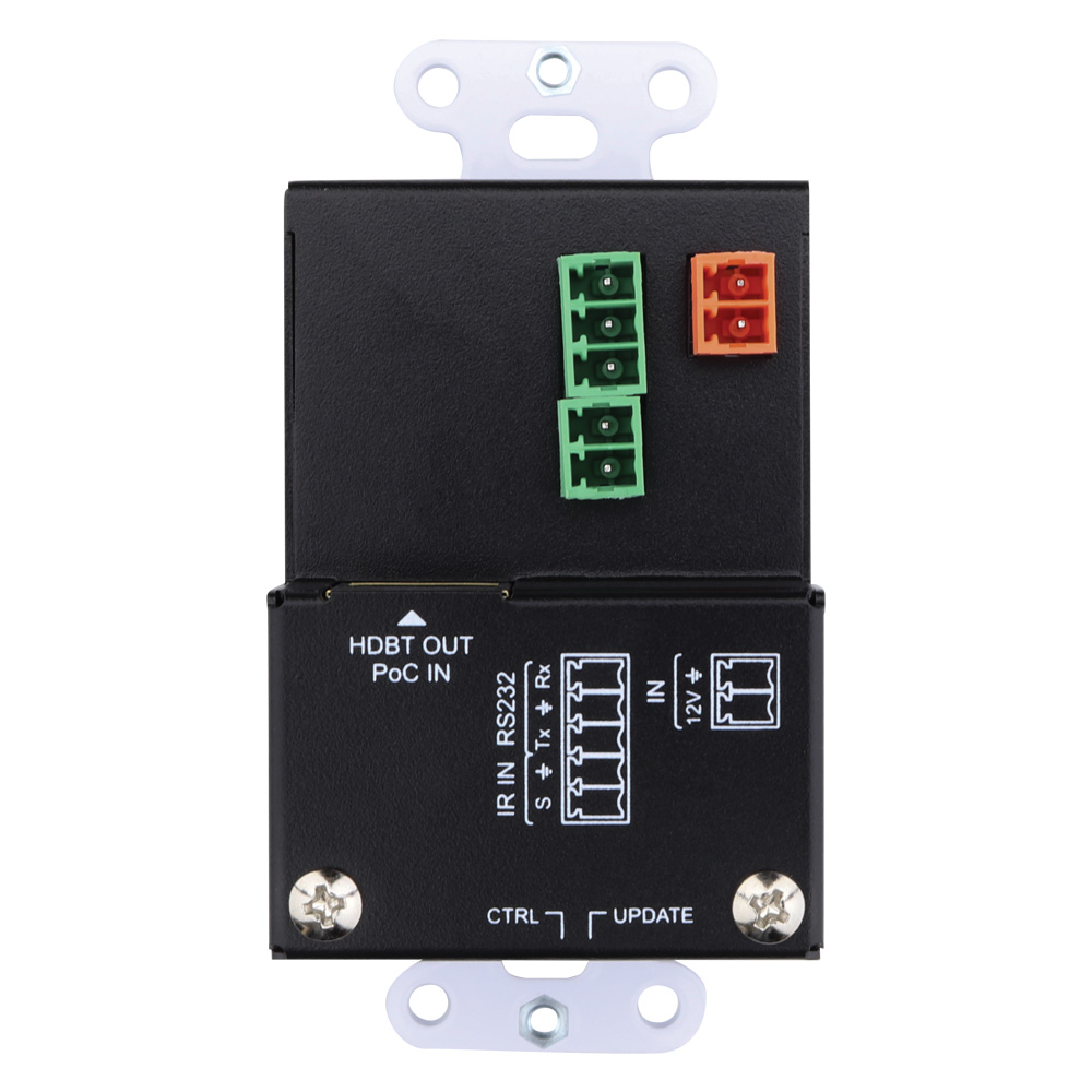 The HD-H704K-WP 18G HDMI® Extender consists of a single gang wall plate transmitter and a small thin brick receiver. The extender adopts PoC technology to extend 4K @ 60Hz 4:4:4 HDMI® video to distances up to 40 meters (131 feet) and 1080p @ 60Hz video to distances up to 70 meters (230 feet) over a single CATx cable. It supports bi-directional RS-232 and IR pass-through to control source or display devices remotely. It also supports CEC pass-through. The HDBaseT® (PoC) feature allows the transmitter to be powered by the receiver over the CATx cable.