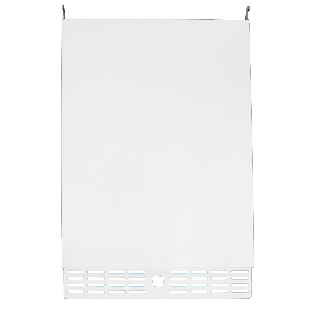 The CB-12+ is a 1’ x 2’ enclosure that provides an external AC receptacle on the ceiling surface, five additional pre-wired AC receptacles inside the enclosure, one shelf to mount two half-rack devices for AV equipment, and knockouts. A key improvement in the CB-12+ series is the consolidated fan & pre-wired AC arrangement, optimizing internal space for more flexible equipment management. All models come with two brush-lined low-voltage decorator-style wire entry plates on the chassis' sides to facilitate A/V and Data wiring requirements. A dual-tilting equipment shelf adds versatility for mounting & servicing equipment at a later date. An optional upgraded fan kit is available.