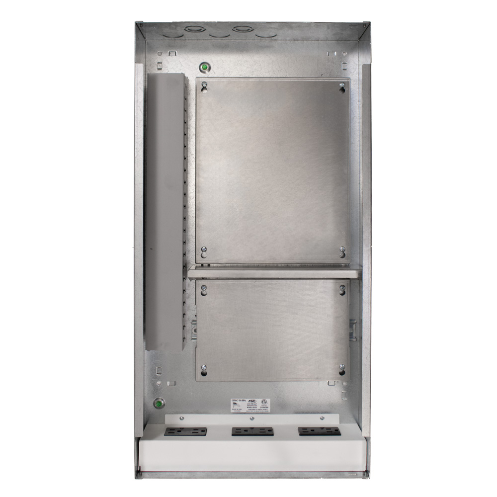 The MWB-28 multi-trade wall box is designed for installations where multiple devices, such as PoE network switches, set-top boxes, and emergency call systems, can be secured and easily accessed for maintenance. The MWB-28 measures 28 inches tall, simplifying AV/IT installations by providing space for routing cables, AC power connections, and digital media products. The front flange is designed to sit flush with the finished wall surface, ensuring a clean and professional appearance. This wall box will fit in 16” on-center wood or metal studs. It features five top KOs along with four bottom KOs. The box features a flush key lock for secure access and a white cover that blends seamlessly into any environment, allowing for orientation in either direction.