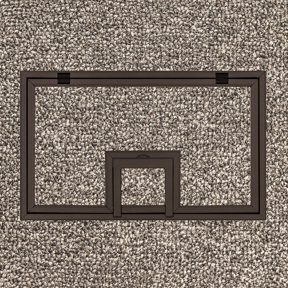 There are a variety of covers to choose from. Options include integrated carpet edging, flat covers for non-carpeted, bare floor applications, and different finishes. The lift-off section of the cover allows full access to internal connector plates and stored cables. The hinged cable exit door flips back to allow the cover to remain in place after connections are made and cables are routed through it. The 0.25” and 0.50” raised edge style covers are UL scrub water approved.