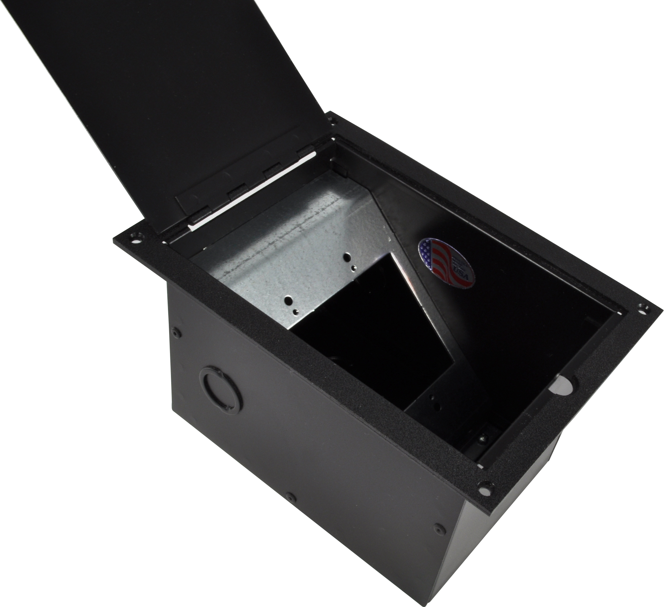 The FL-1300 is a practical floor box designed for wood stage floors and computer floors. A standard 2-gang blank plate (supplied with the box) provides the contractor a perfect solution for audio, video, power or telecommunication connections.