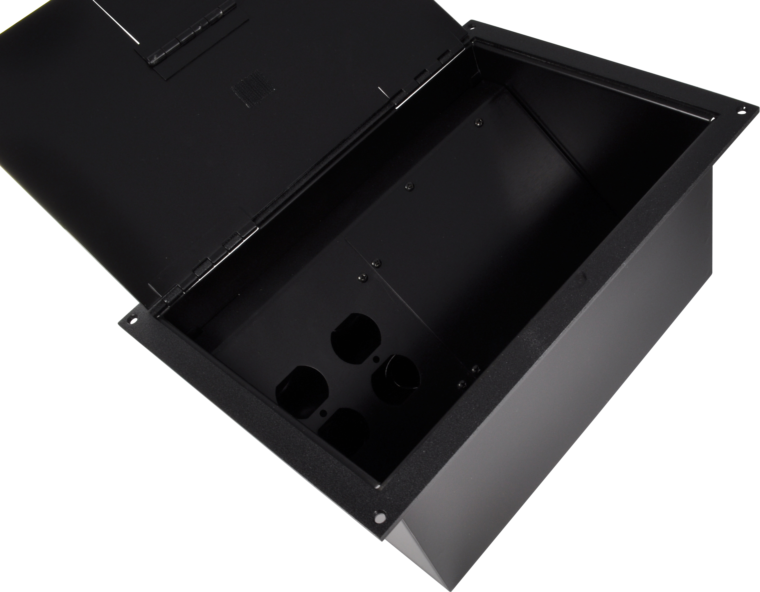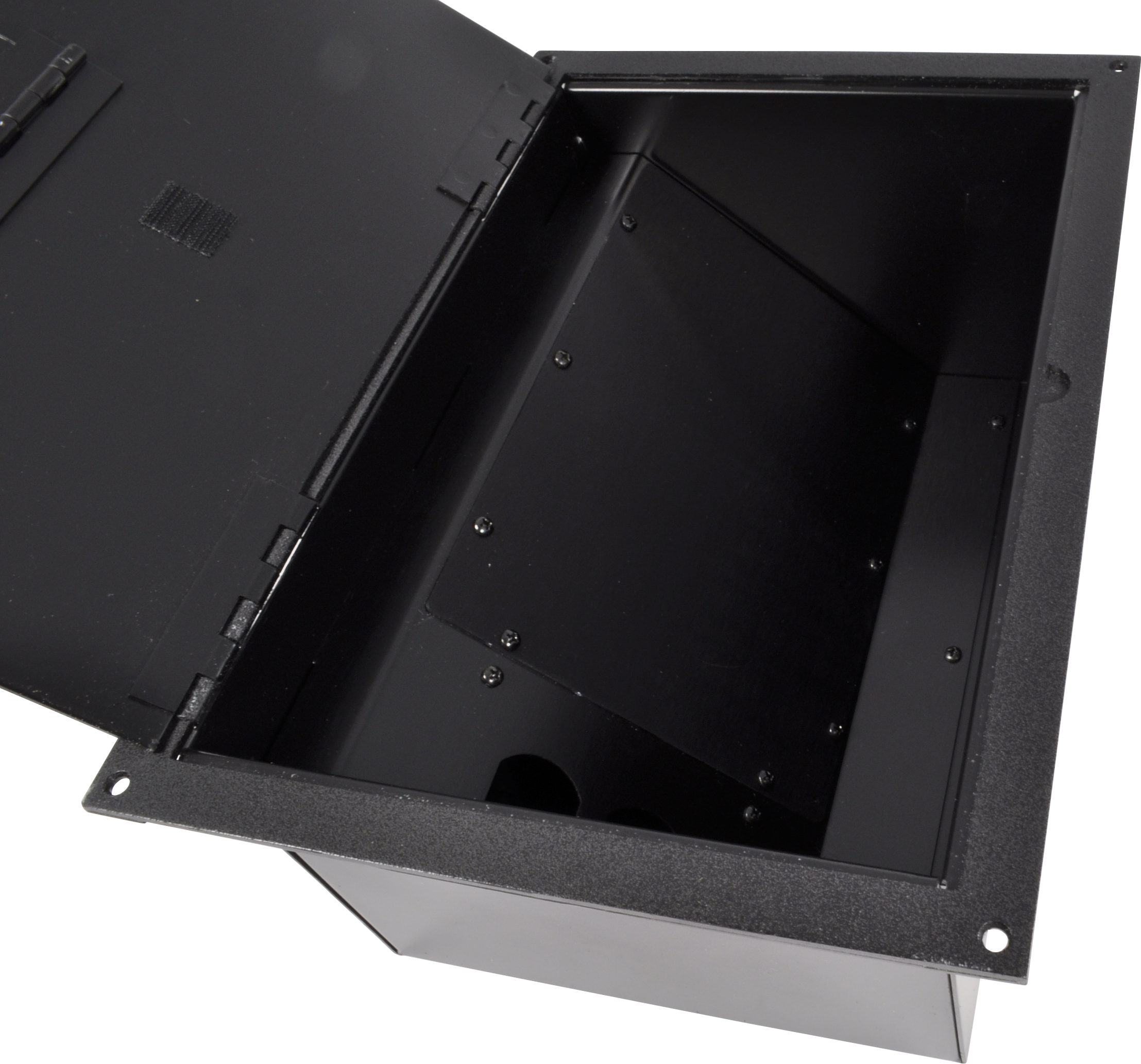 This unique box is designed especially for wooden stage and computer floors. The FL-1500 floor box provides a practical solution for power, audio and video cable termination and connection. Its dual-door design allows full access when making connections yet only leaves a small cable opening during use.