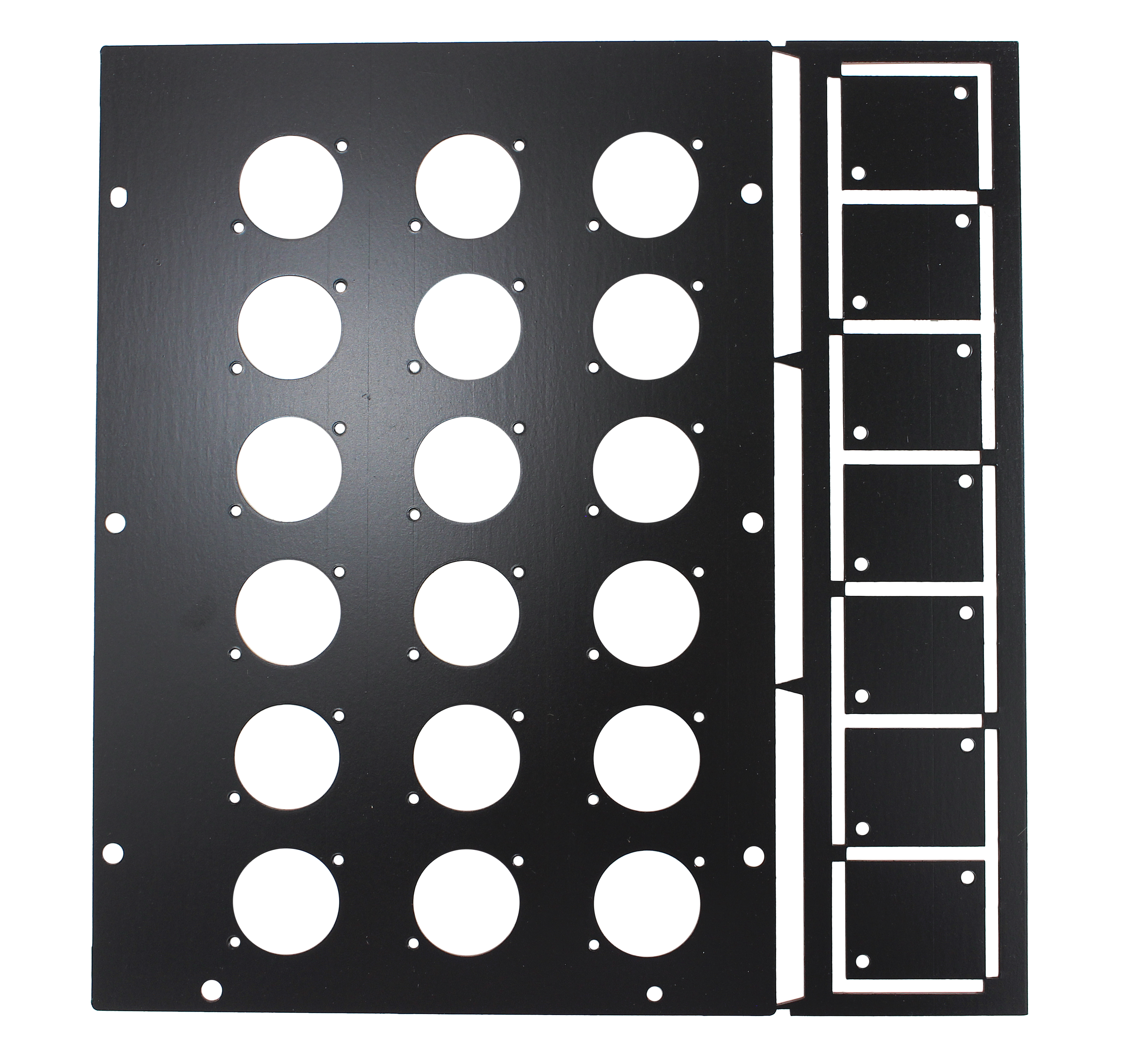 The cover of the the FL-1500 is painted with Black paint with eight knockouts, four on the rear, and four on the bottom. The power section has two knockouts, and the audio/video section has four or six depending on the insert.
