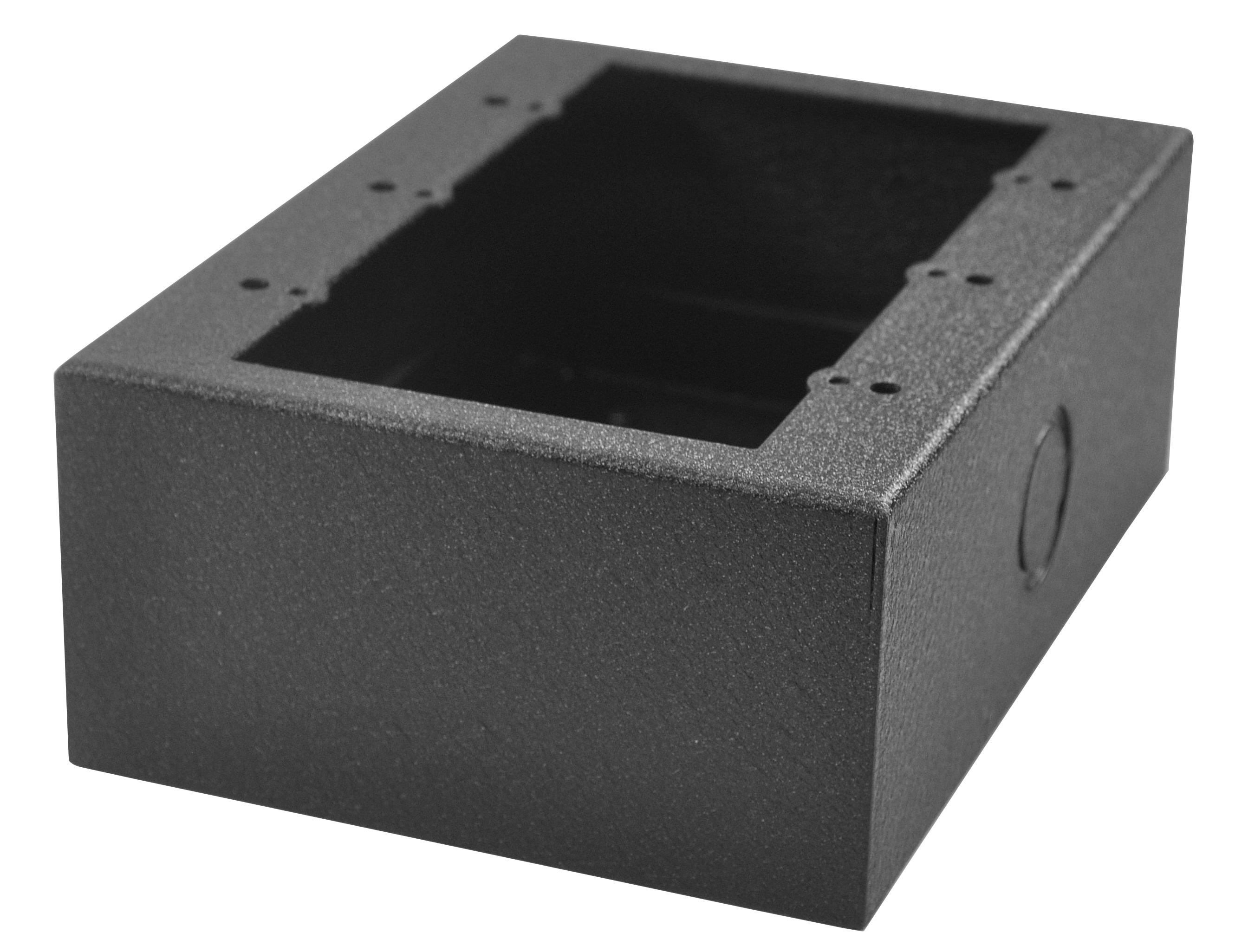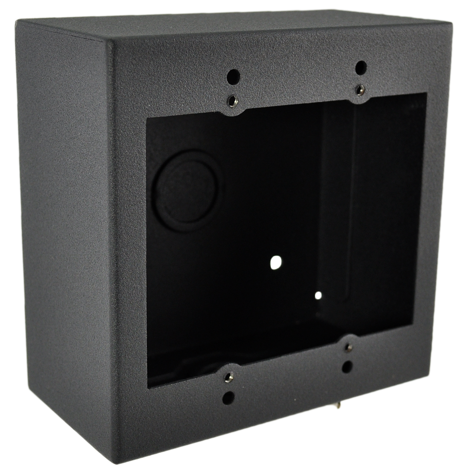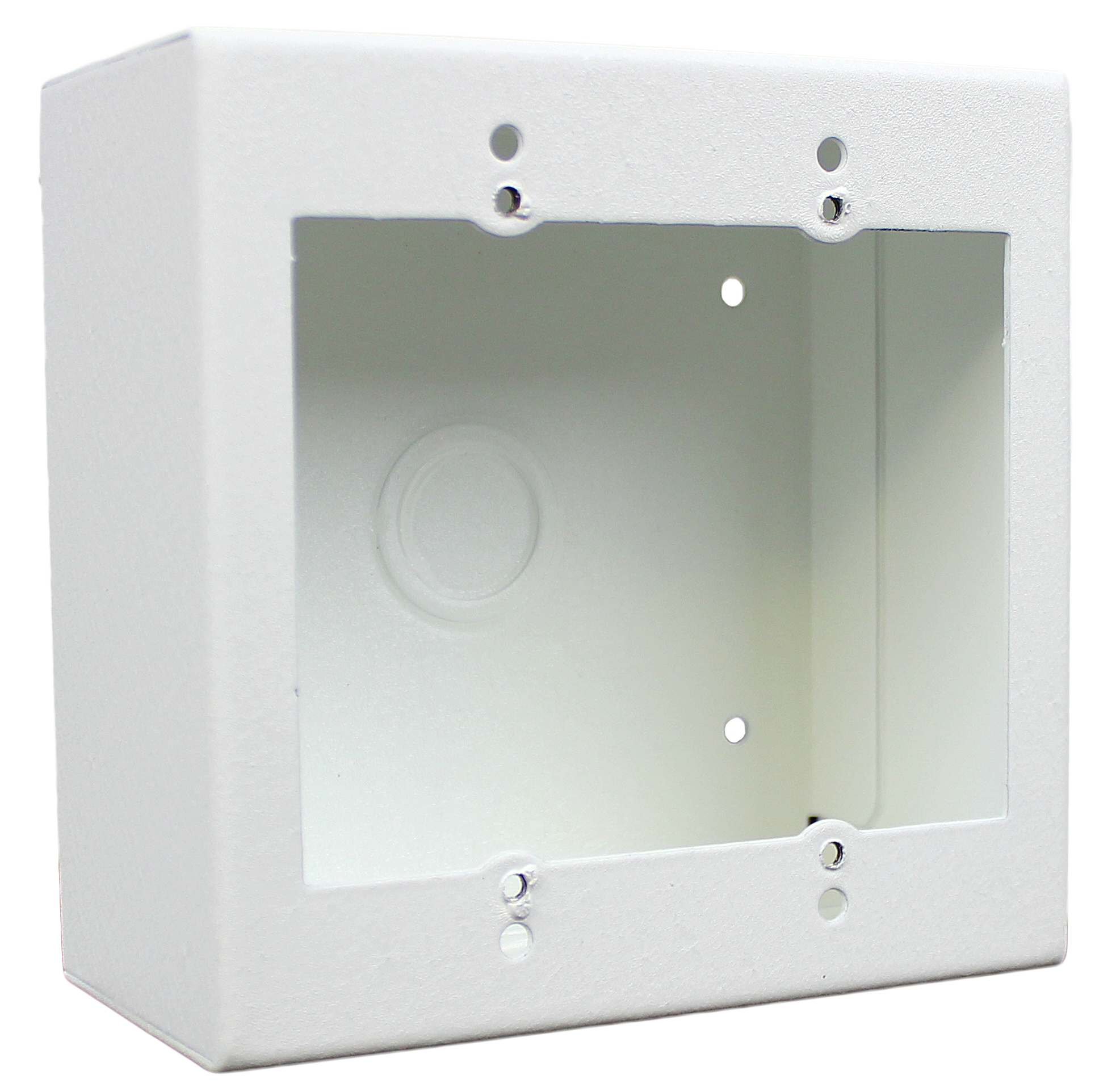 Mounting holes allow for fixed mounting on virtually any wall surface so the accessory plates are easily accessed. The four models are available in textured black or white paint. Standard concentric knockouts facilitate convenient wiring and installation.